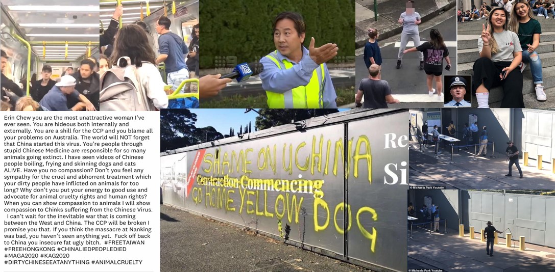 And similar type graffiti was also seen in Western Australia and other states in Australia. Founder and editor for Being Asian Australian site Erin Chew received an essay of racism targeted directly at her, accusing her of being a Chinese spy and threatening world war 3 against everyone who is of Chinese background.
